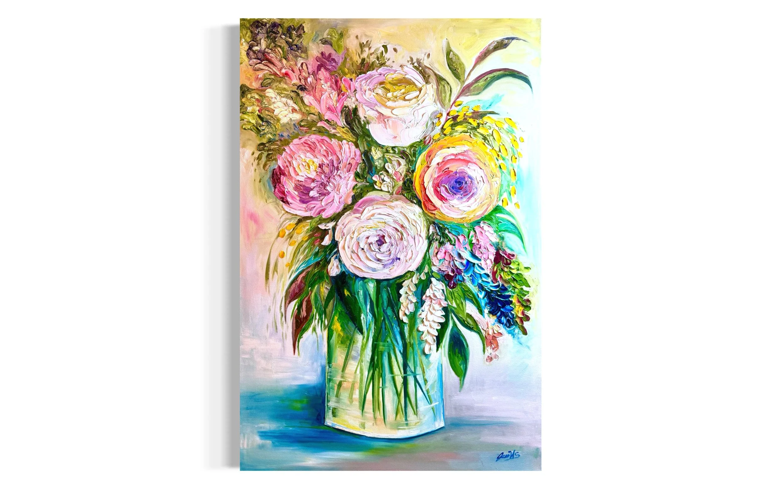 Painted with expressive brushwork and a luminous palette, A Good Morning invites the viewer to pause, settle, and stay awhile. It brings softness without fragility and joy without noise, making it equally at home in a serene bedroom, a light-filled living space, or anywhere you want the room to feel quietly alive.